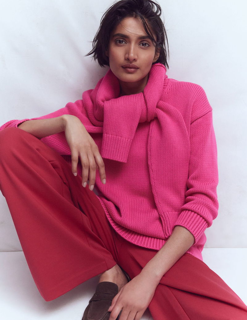 Now Lucy has landed, wear her slouchy with the ribbed edges on show under a coat or jacket for an instant cold-weather win.