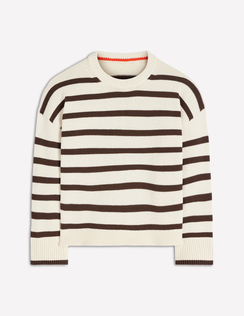 Lucy Relaxed Cotton Jumper-Ivory, Brown