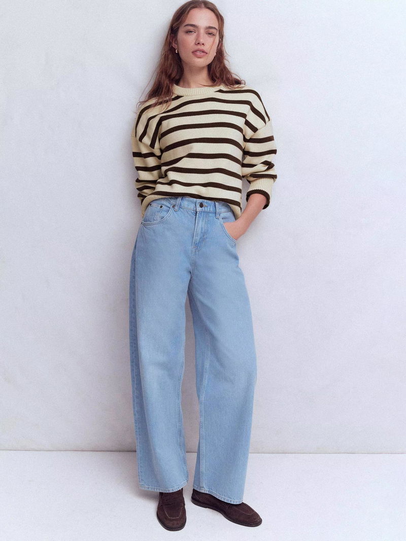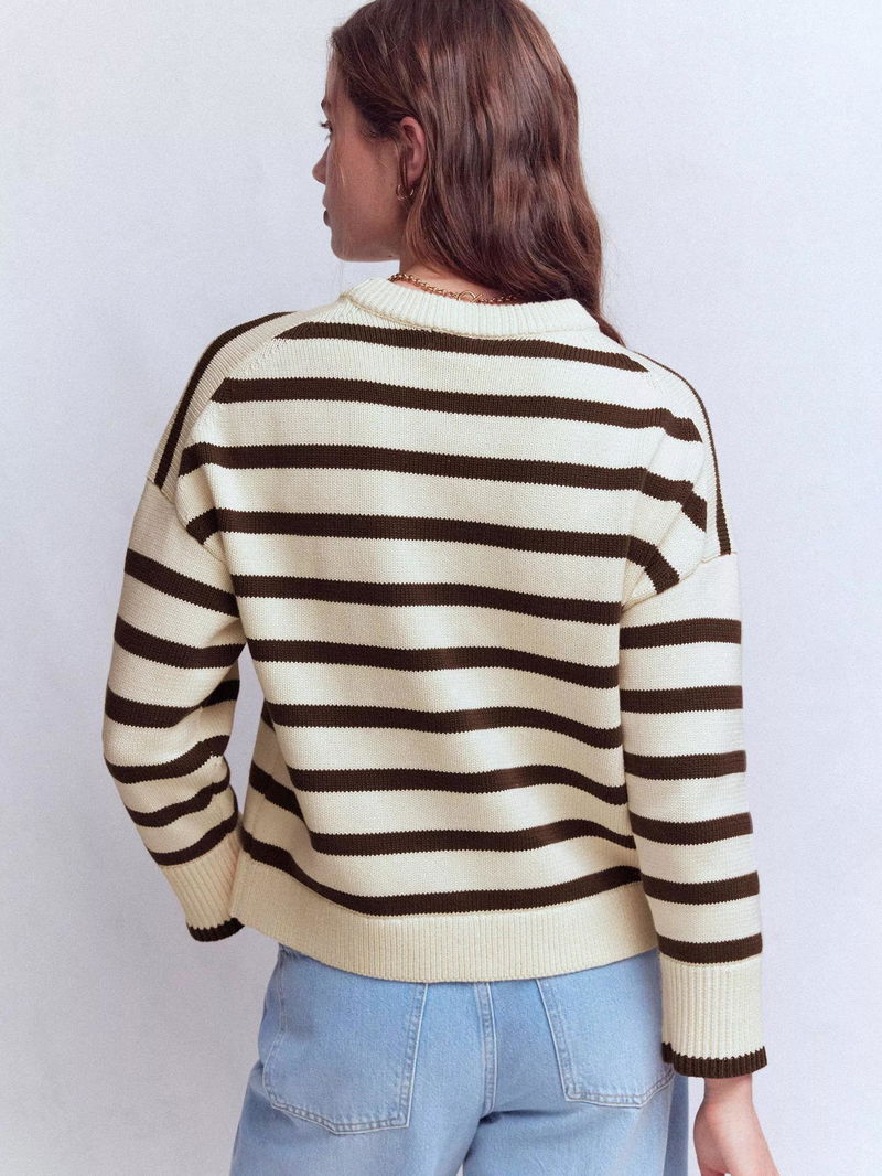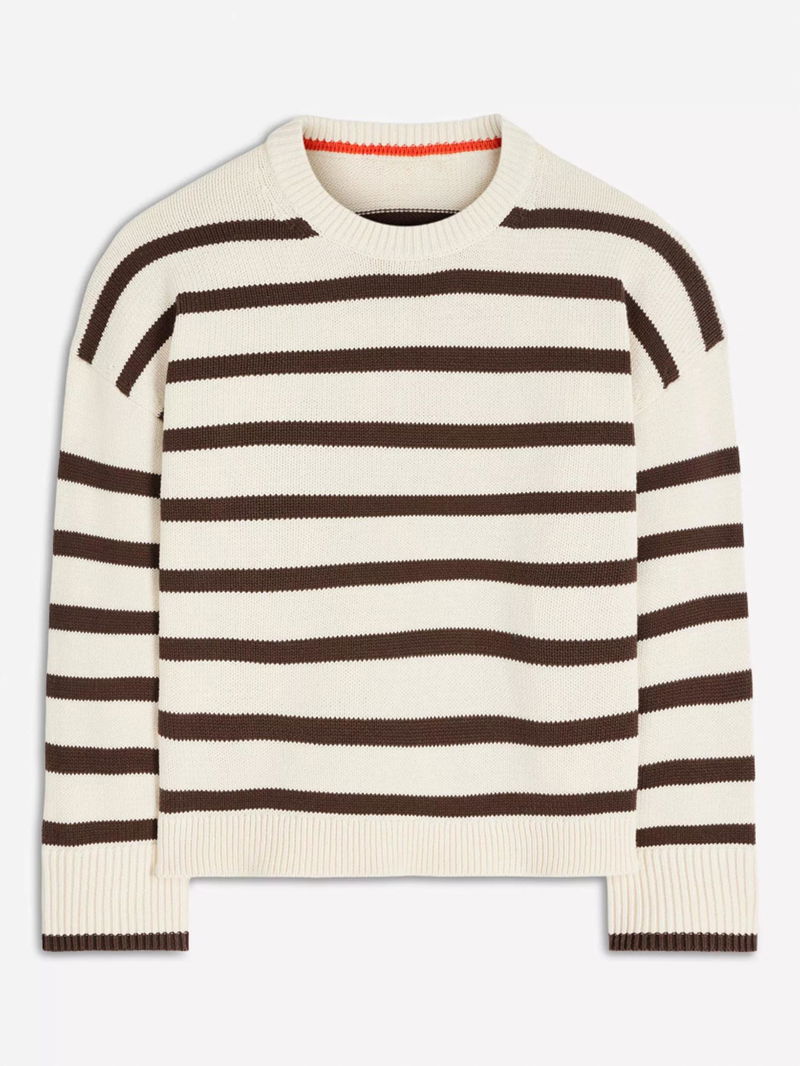 Lucy Stripe Crew Neck Jumper, Ivory/Brown