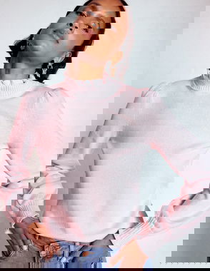 Laid-back style combines with a big helping of smartness in this statement jumper. It's knitted from a merino-wool blend to create a gentle drape – we've then added a hint of cashmere for a luxuriously soft feel. Dropped shoulders make for a relaxed fit and earn extra points for flattery. What could give it an elegant twist? Cotton broderie frills peeking out from under the collar and cuffs, of course.