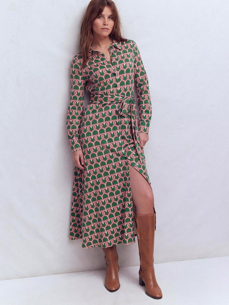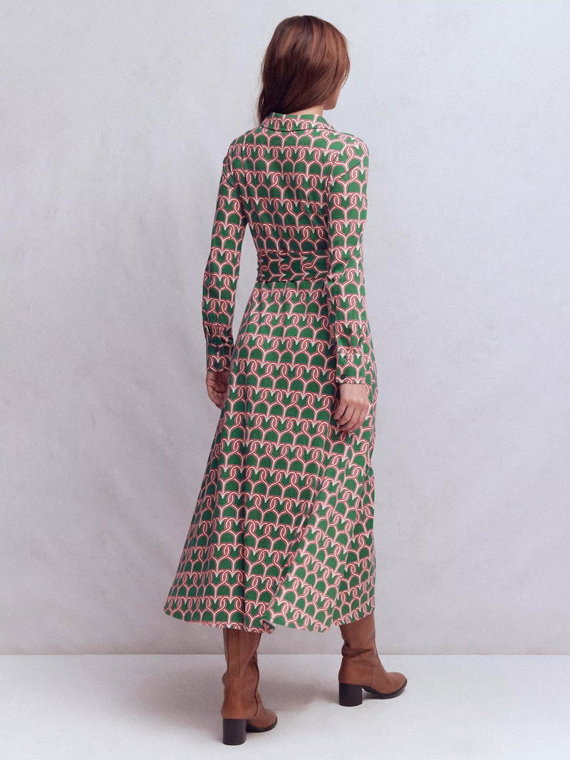 Marcia Heart Link Jersey Shirt Midi Dress, Green