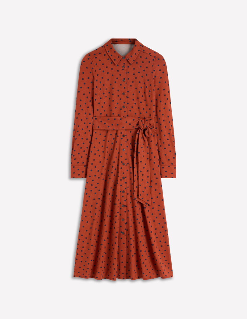 Marcia Jersey Shirt Dress-Burnt Orange, Navy Spot