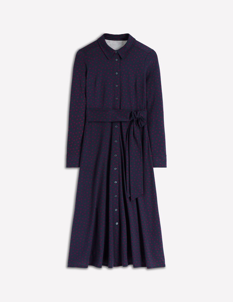 Marcia Jersey Shirt Dress-French Navy, Painted Dot