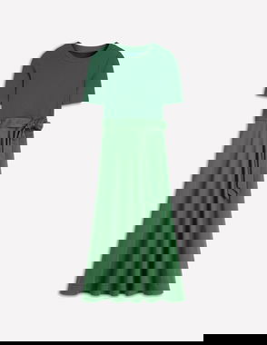 Marcia Jersey Shirt Dress-Hunter Green, Painted Dot