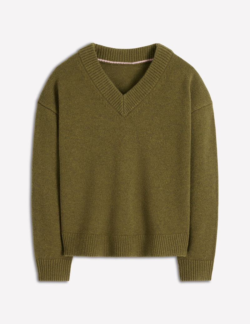 Marion Merino V-neck Jumper-Promenade Green Melange