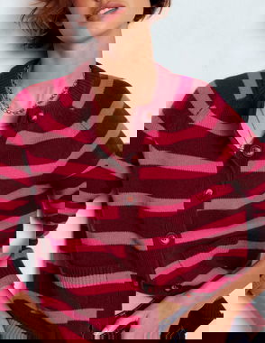 Marion Stripe Pure Wool Cardigan, Umber/Brilliant Pink