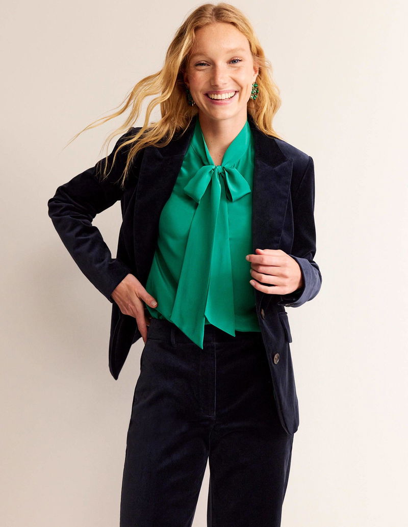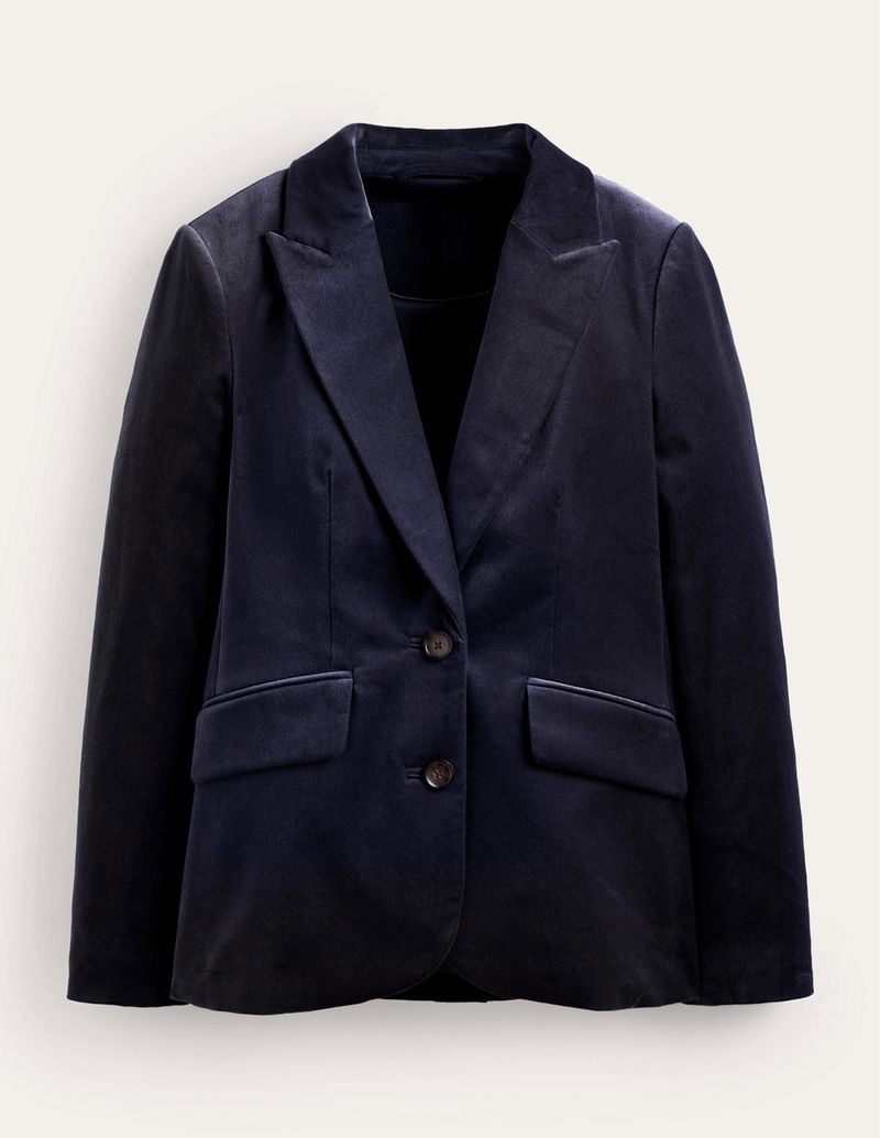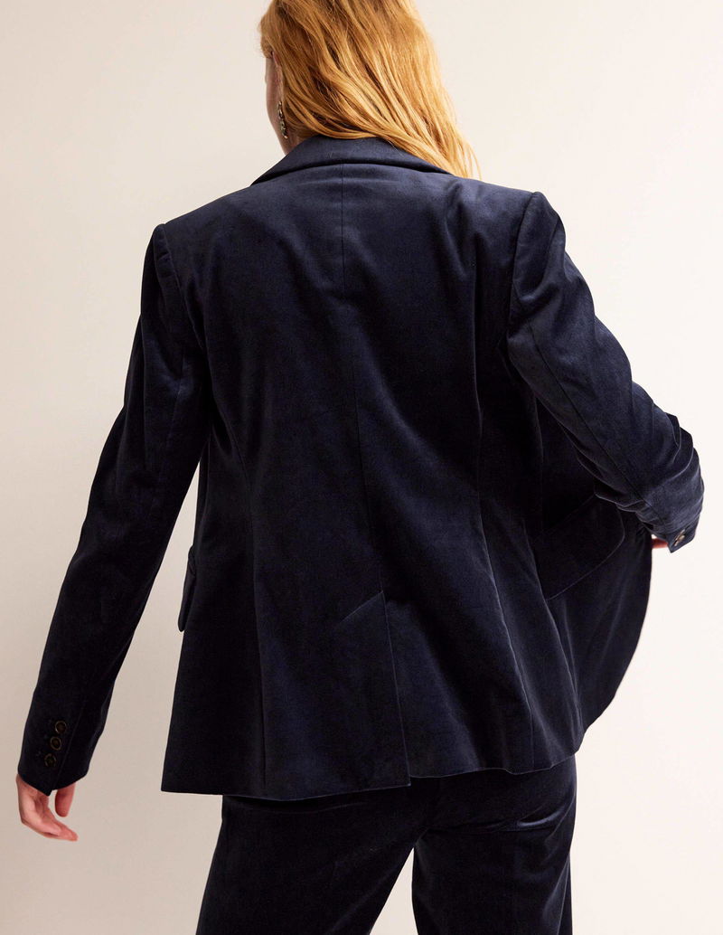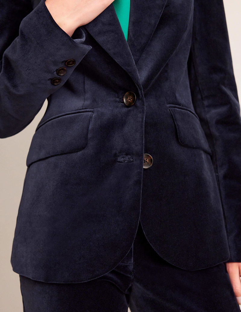 Meet the Marylebone blazer. This semi-fitted style is crafted from smart velvet, features a wide revere collar and is fully lined. Pair with the matching trousers for the ultimate outfit.