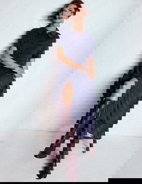 Mathilde Tie Waist Ponte Dress-Navy