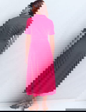 Chic, smart and super flattering, this ponte dress is destined for wardrobe stardom. Look out for thoughtful details, like box pleats on the front and subtly puffed sleeves. It’s fitted through the body for a smooth, refined shape, and is available in classic block colours. Dream dress status: confirmed.