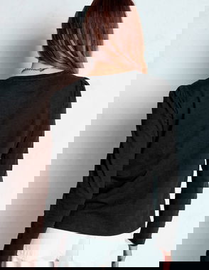 Metallic Trim Long Sleeve Top-Midnight Teal