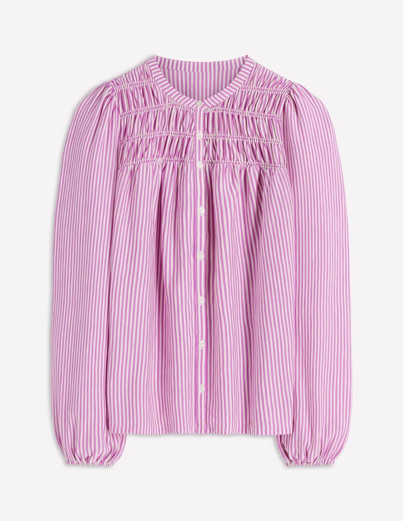 Mya Smocked Jersey Shirt-Clover Purple And Ivory Stripe