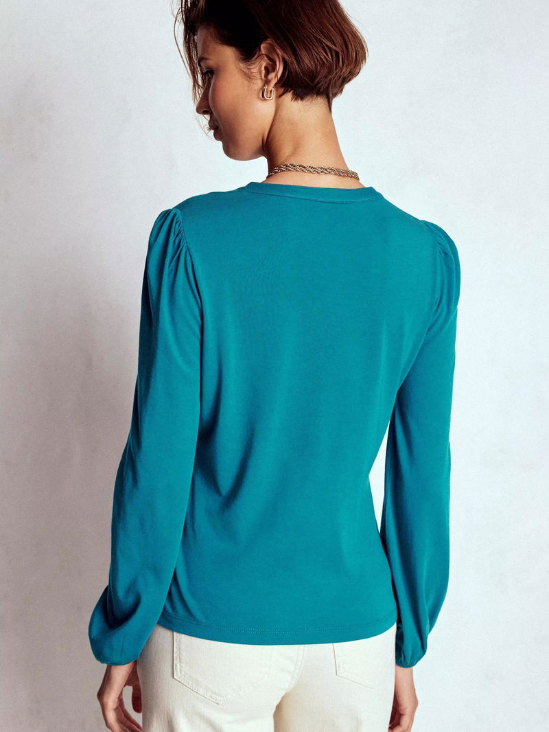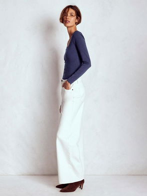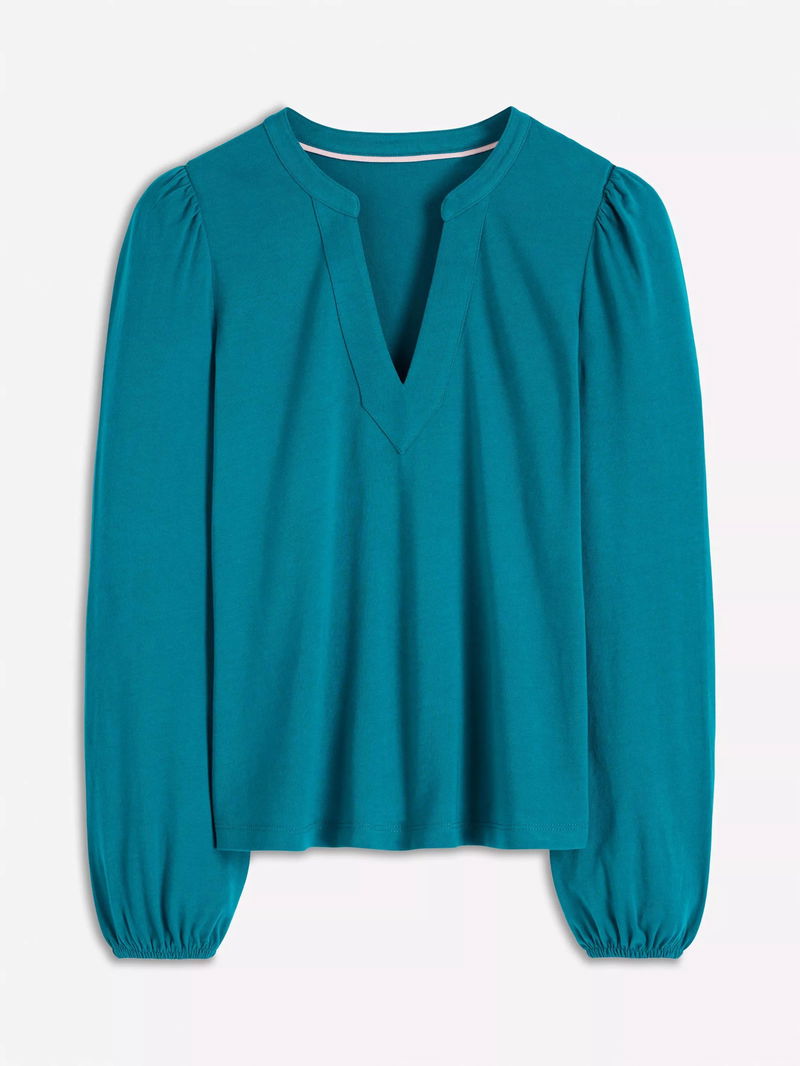 This clean-cut notch neck top will feel soft on your skin and look great with your jeans.