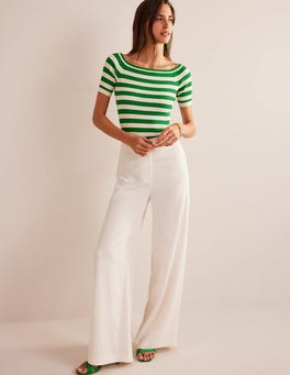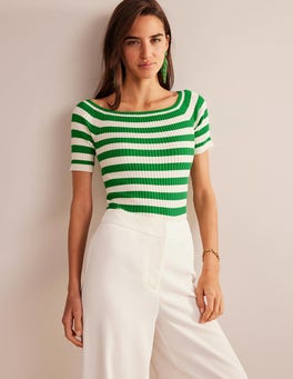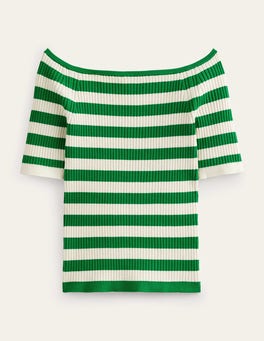 The ribbed finish of this cotton-blend top adds ease to the fitted shape. It's cut with three-quarter length sleeves and sits comfortably off the shoulder.