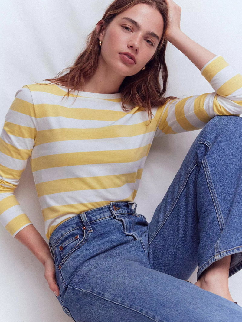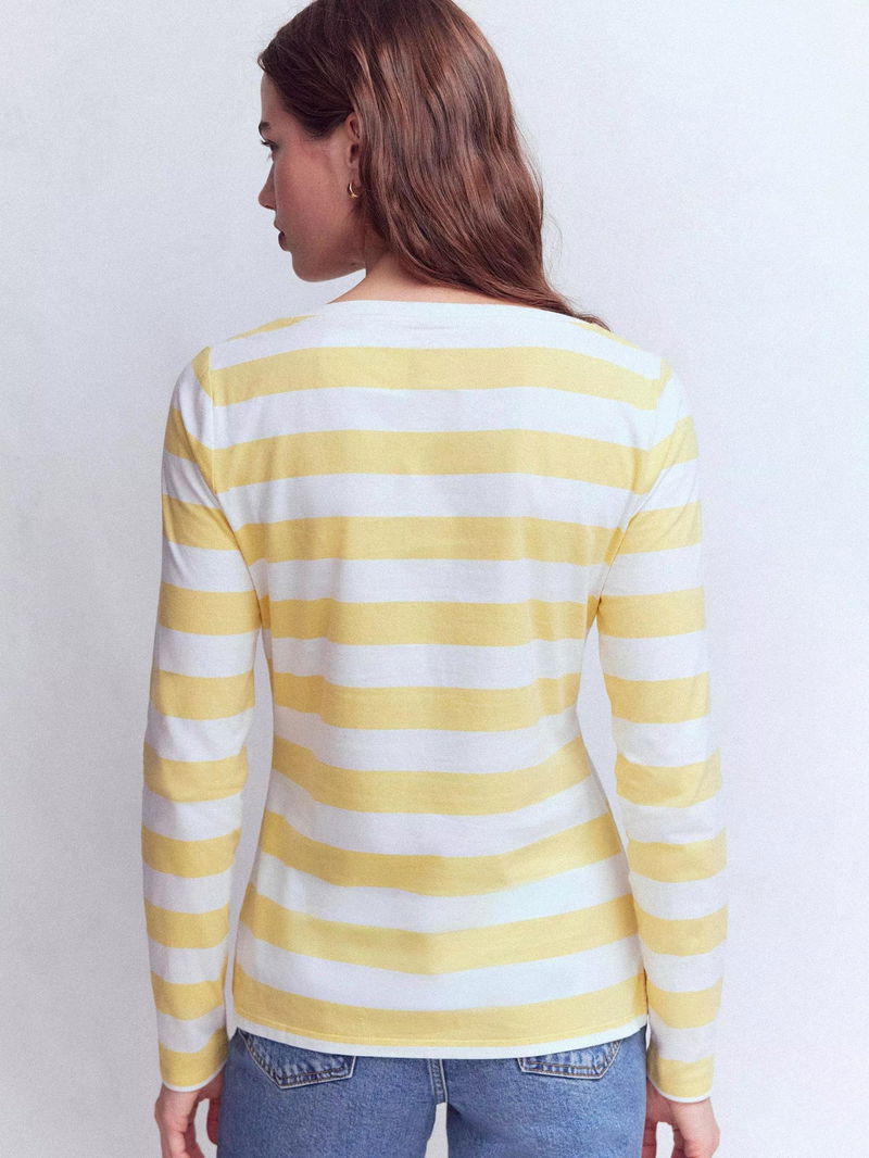 Olivia Long Sleeve Cotton Breton Top, Citron/Ivory