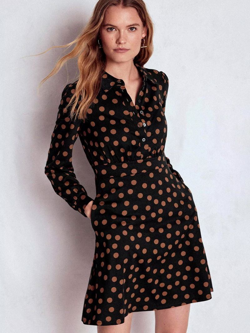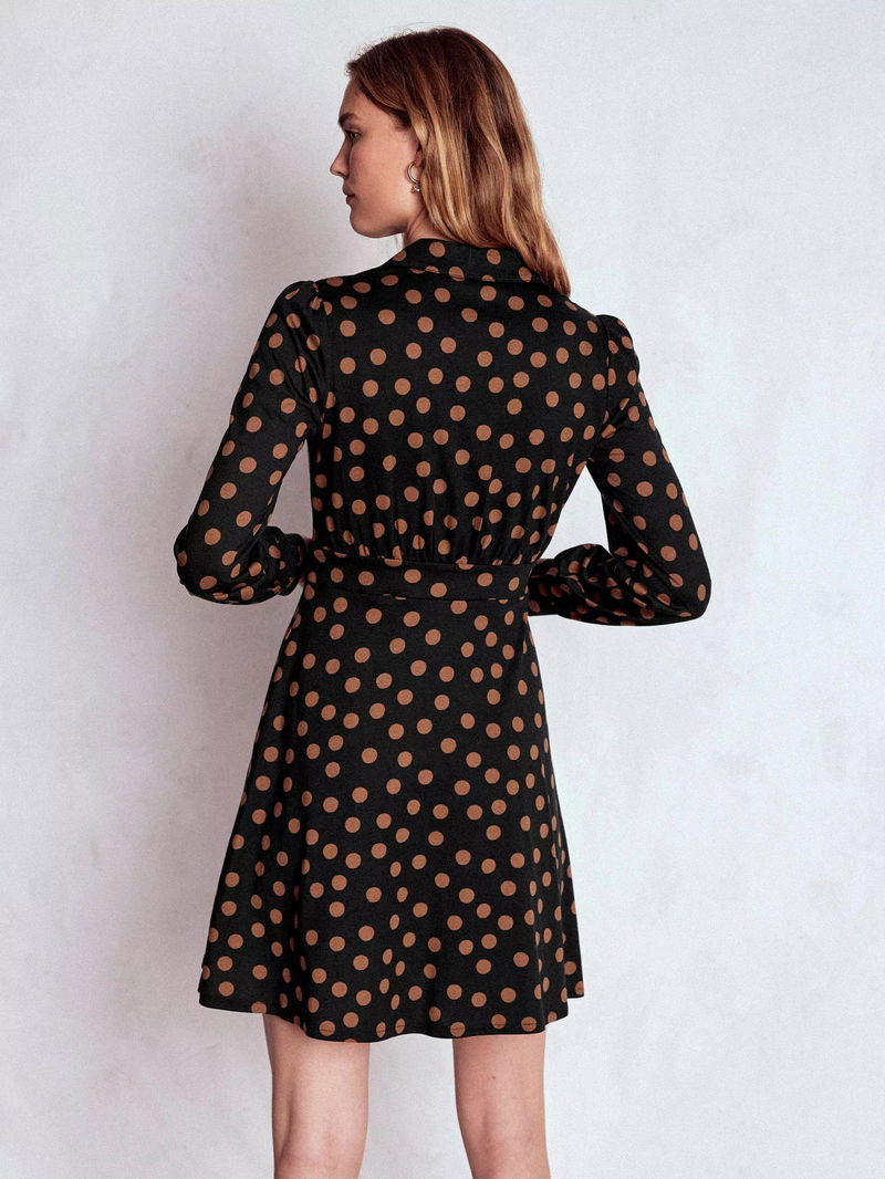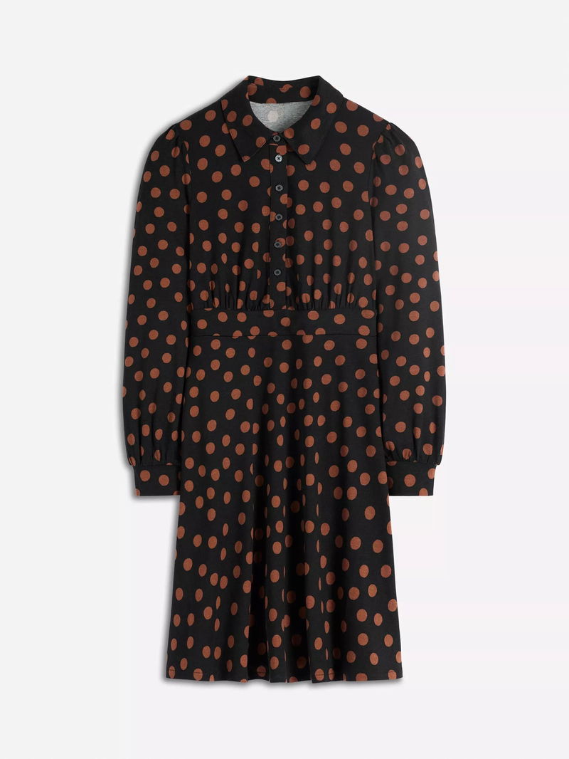 Orla Cotton Blend Polka Dot Long Sleeve Shirt Dress