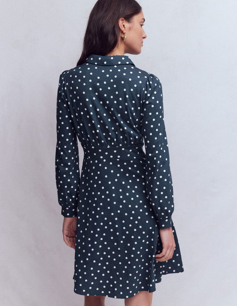 Orla Short Jersey Shirt Dress-French Navy, Painted Dot