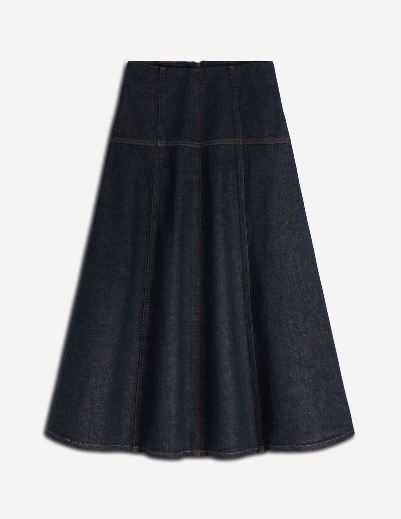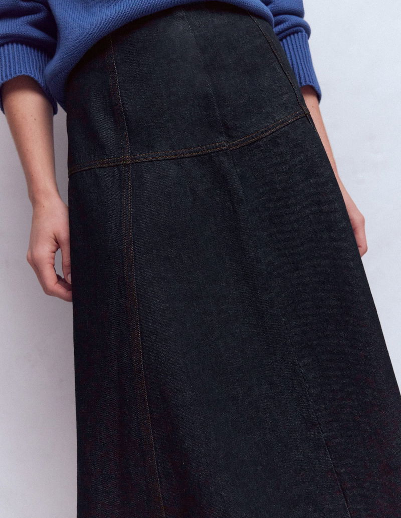 Panelled Detail Denim Skirt-Indigo