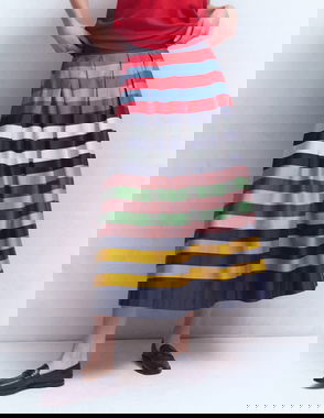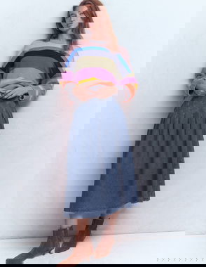 Fitted through waist widening to a flattering full skirt- Length finishes at mid calf- Side pockets- Single stud button fastening at centre front waist with zip fly.