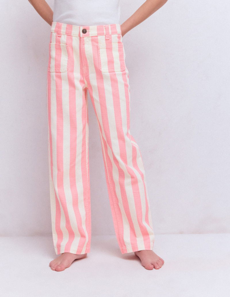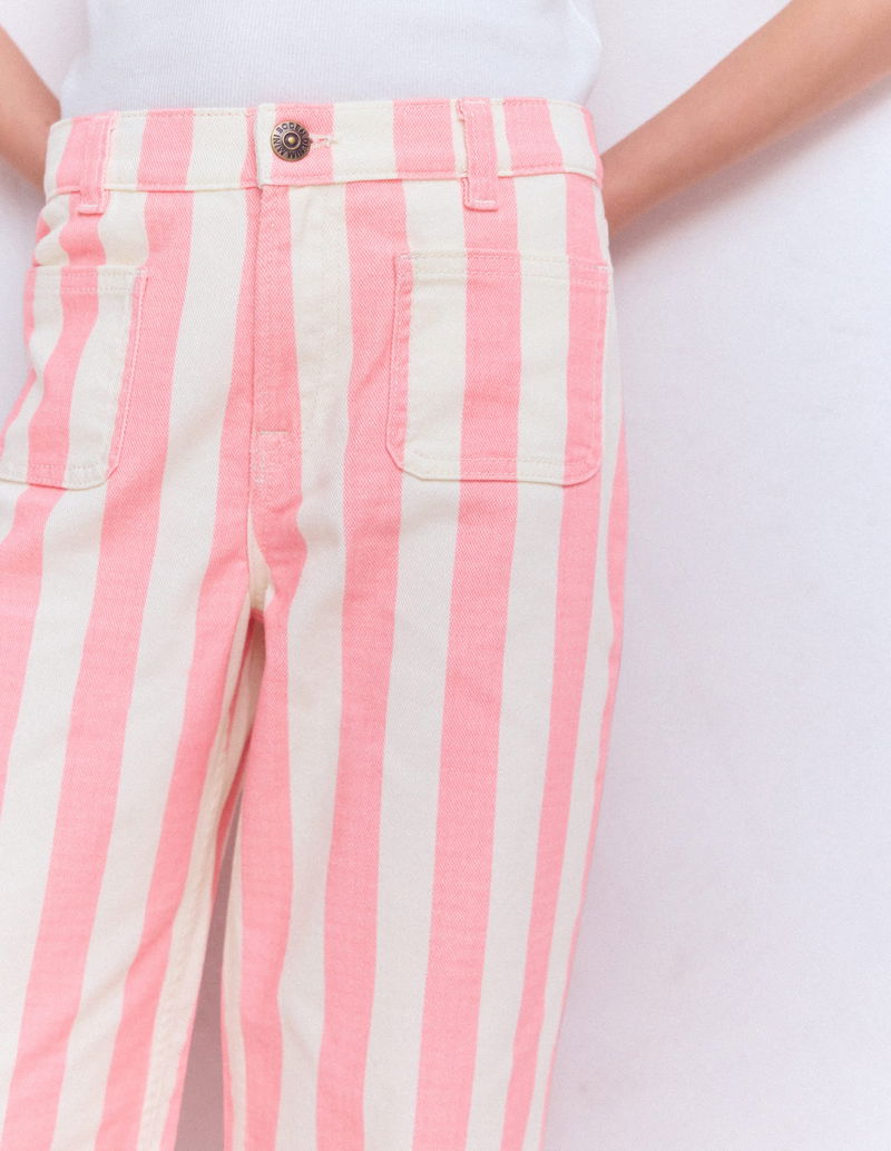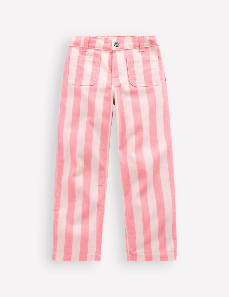 Patch Pocket Straight Jeans-Pink/Ivory Stripe