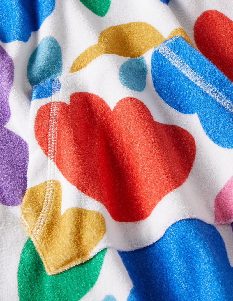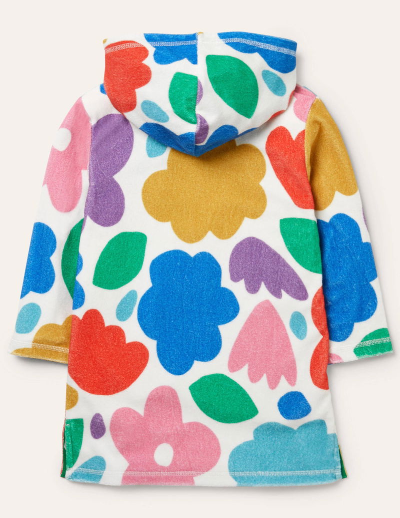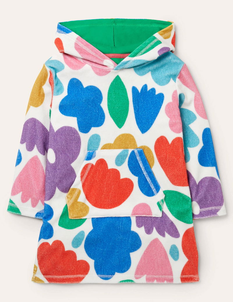 Mini swimmers can leap from the ocean (or pool) to the lunch table in a flash, thanks to this long-sleeved beach dress. The supersoft towelling fabric is quick-drying, and we've added a hood and kangaroo pocket for snuggly warmth. Choose from a selection of bright patterns to bring an extra splash of colour to summer days.