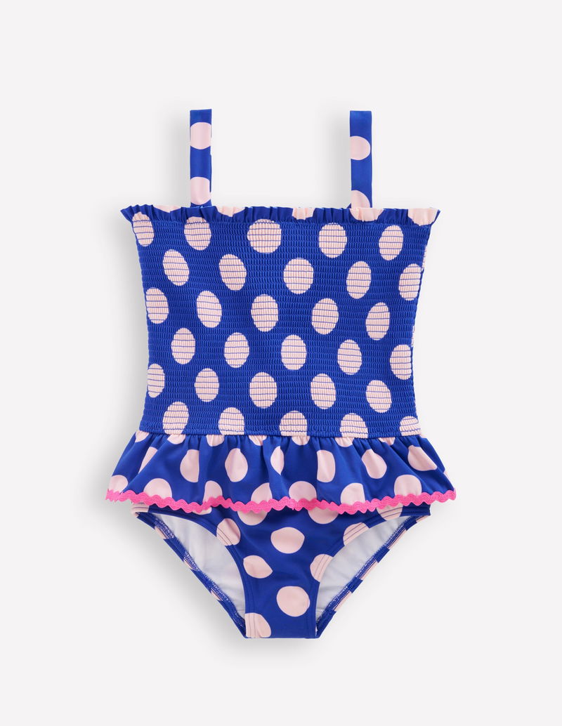 Peplum Smocked Swimsuit-Bright Blue Polka Dot
