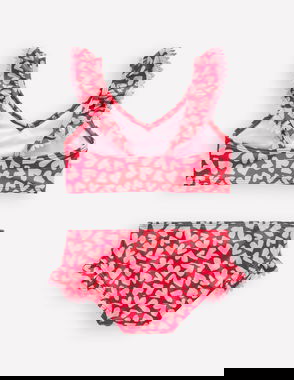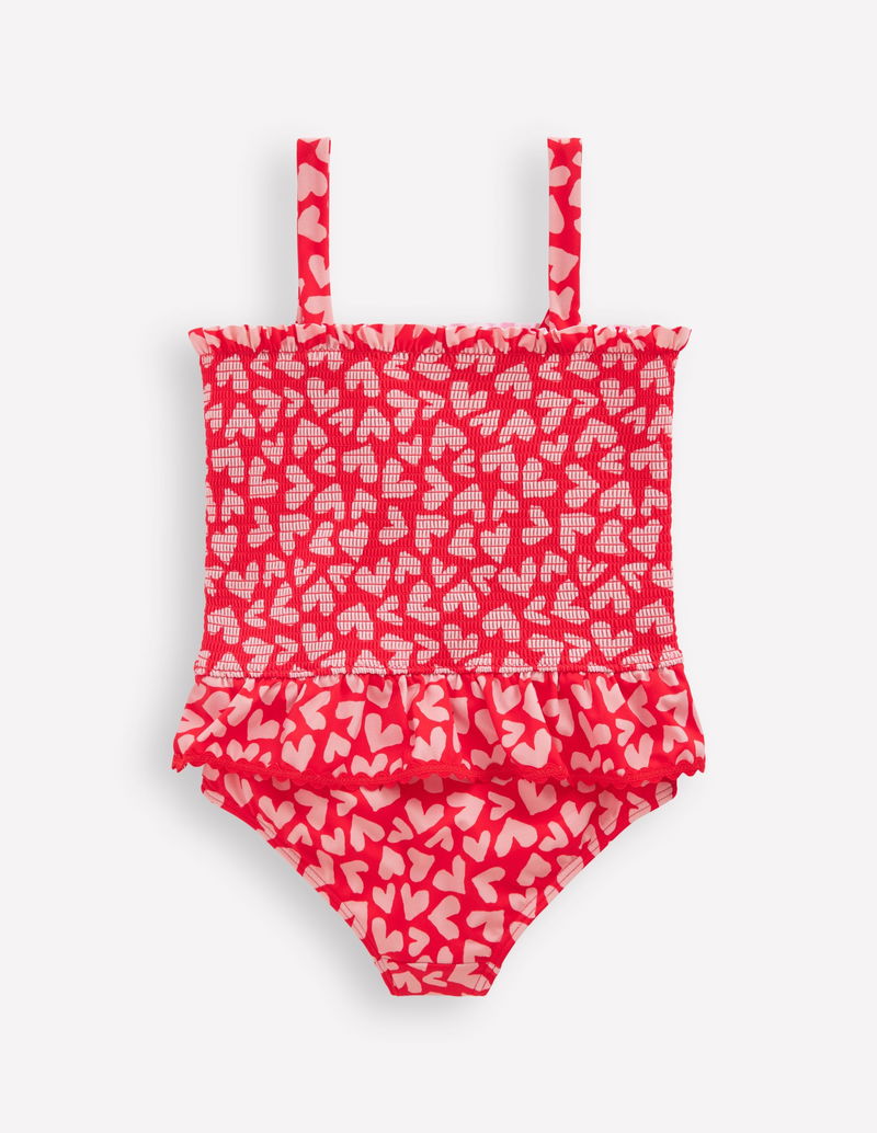 Peplum Smocked Swimsuit-Rockabilly Red Collage Hearts