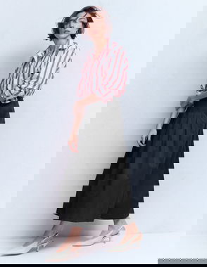 We thrive on well-considered designs and shapes and this pleat detail midi-skirt will keep you looking smart all summer. Style with a blouse for work days or a simple tee at the weekend.