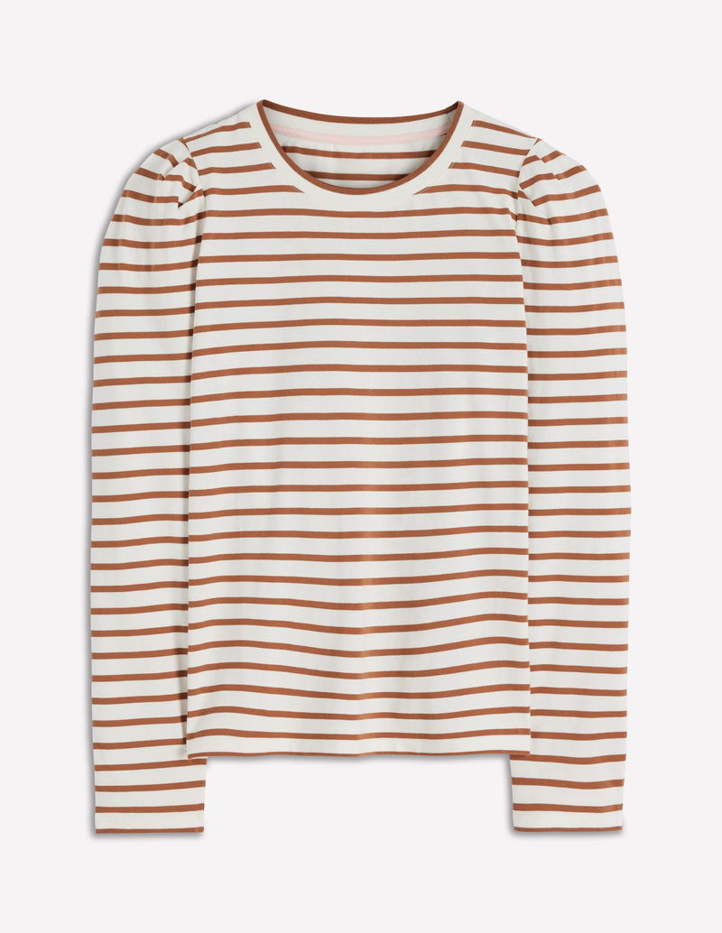 Pleat Sleeve Stripe Top-Ginger And Ivory Stripe