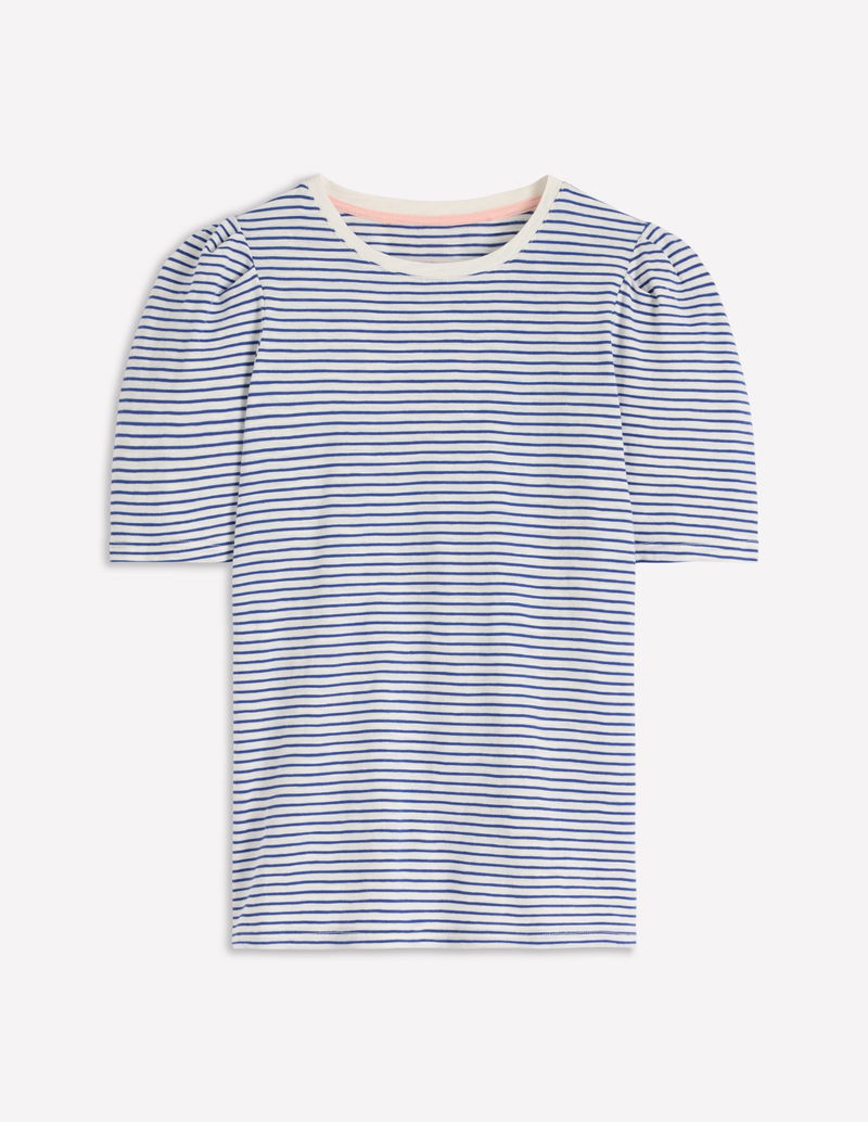 Pleat Sleeve T-shirt-Beaucoup Blue And Ivory Stripe