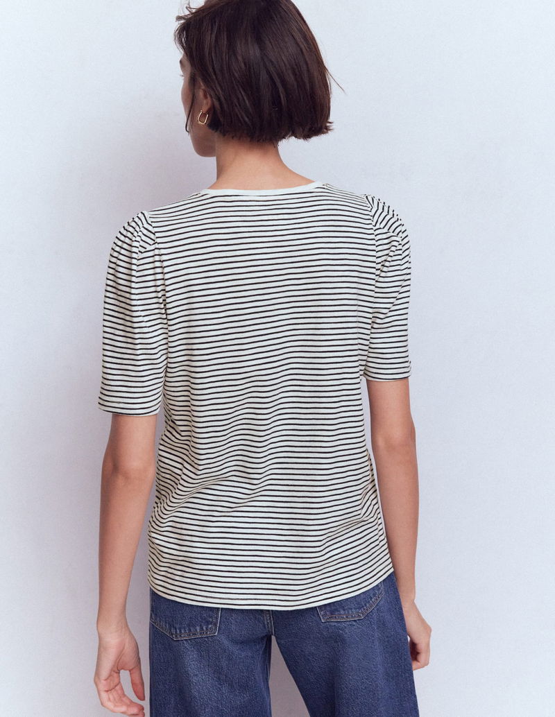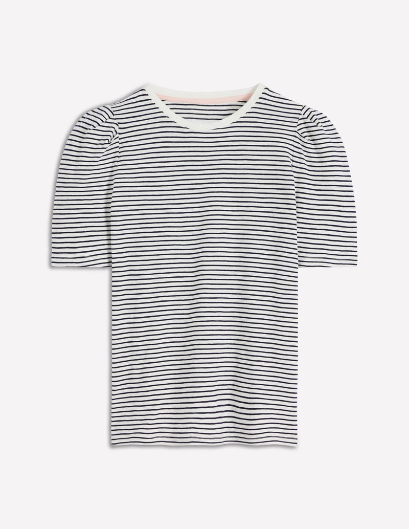 Pleat Sleeve T-shirt-Navy And Ivory Stripe