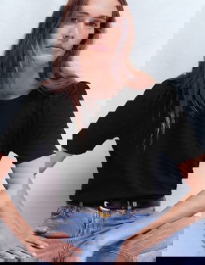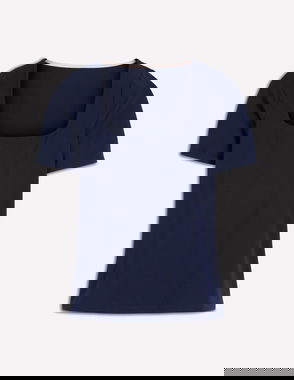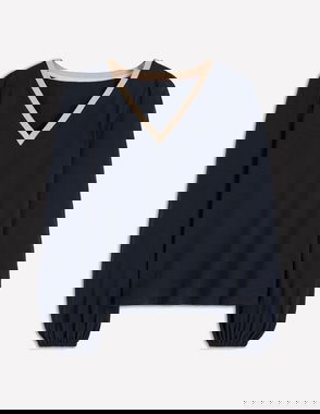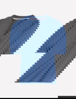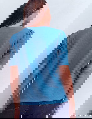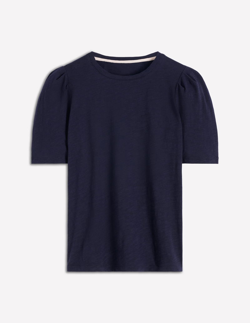 Pleat Sleeve T-shirt-Navy