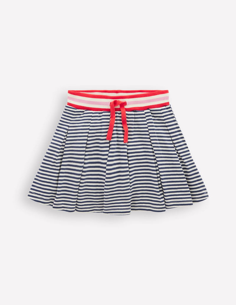 Pleated Jersey Skort-Navy Stripe