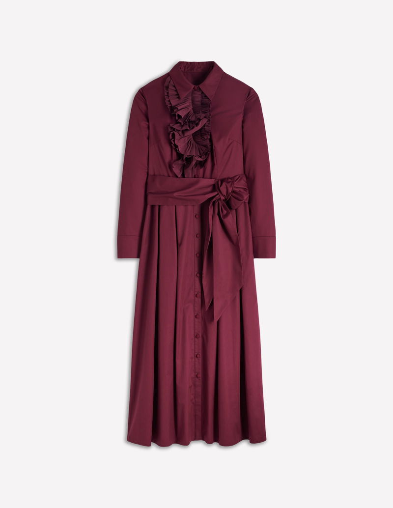 Pleated Ruffle Shirt Dress-Deep Wisteria