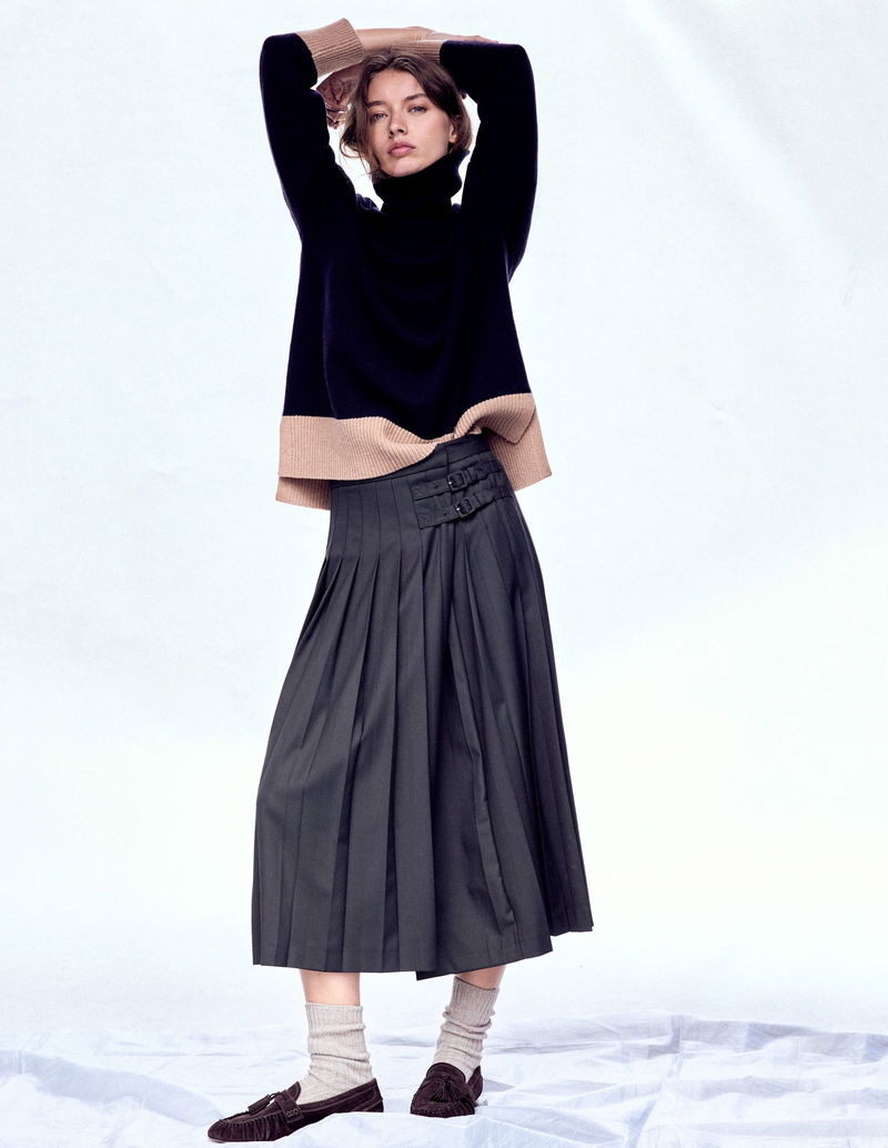 Polly Merino Roll Neck Jumper-Navy, Warm Taupe Colour Block