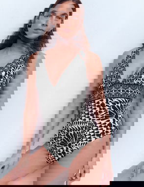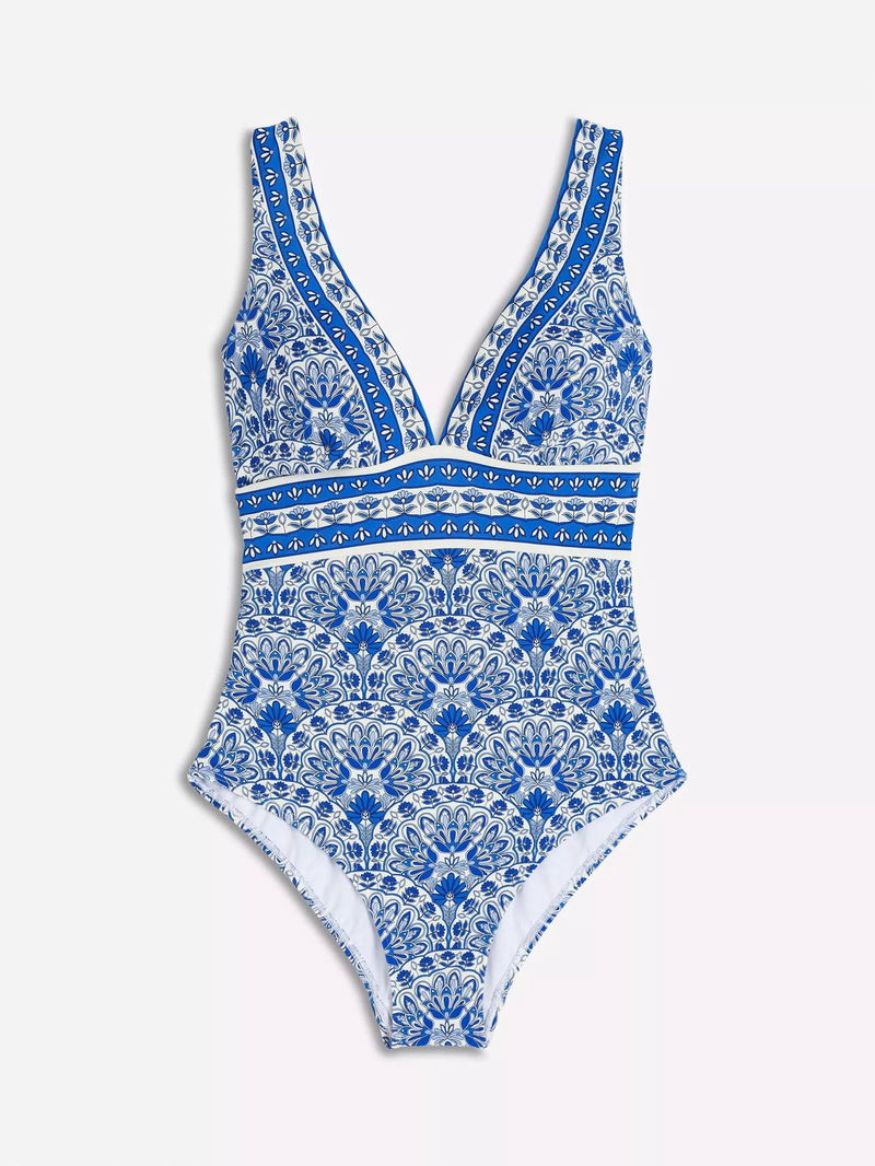 Porto Geometric Floral V-Neck Swimsuit, Blue, Terrace