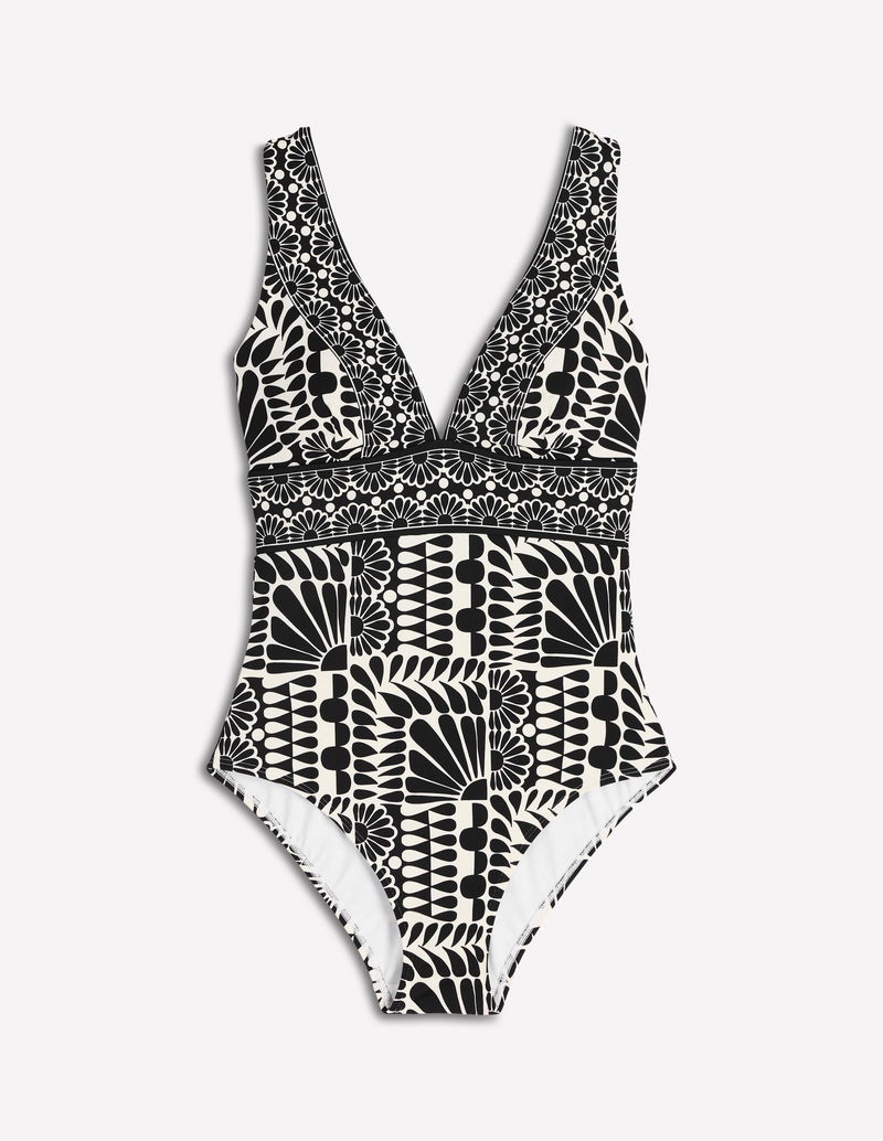 Porto V-neck Swimsuit-Black, Geo Stamp