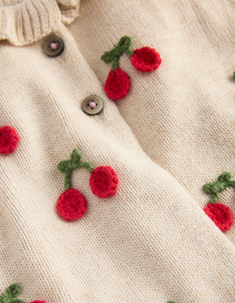 As if they weren’t sweet enough, little ones will look super-duper adorable in this cosy cotton cardigan. Its pretty frills and fruity 3D cherries make it a style to span the seasons.