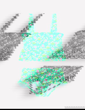 This pretty peplum bikini will really make a splash with its adorable smocked bodice, ruffle straps and double trouble frills. Just add ice-cream and plenty of giggles.