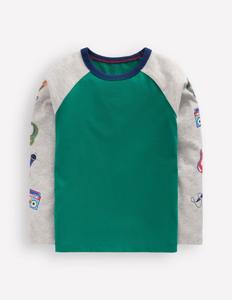 Printed Sleeve Raglan T-shirt-Green Weekend Print