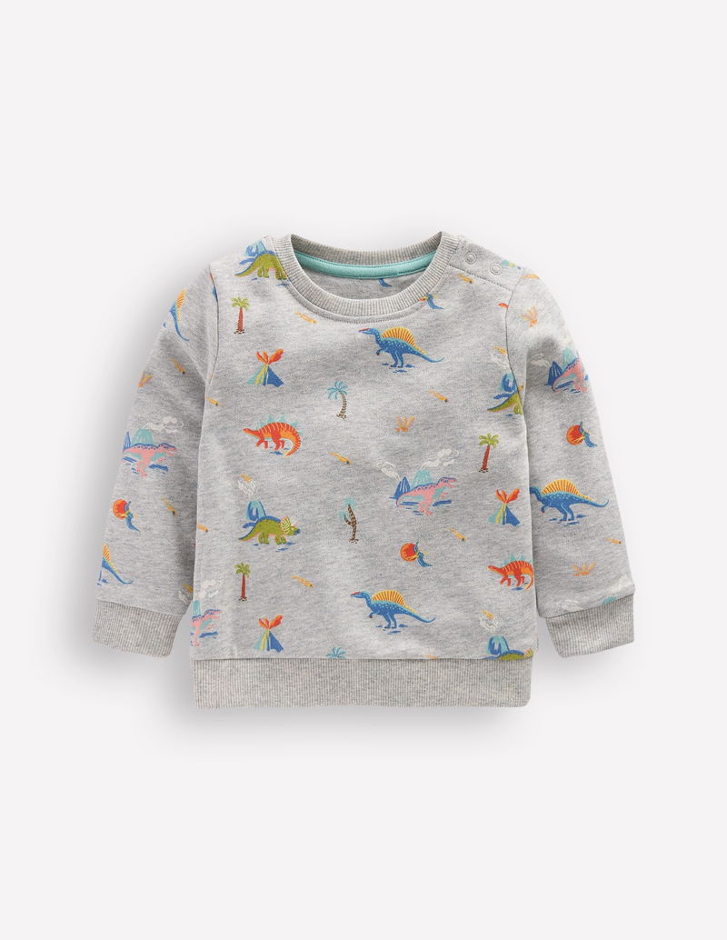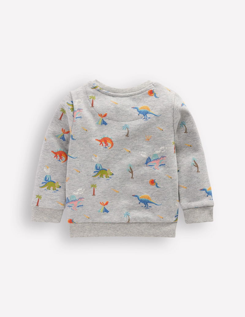 Printed Sweatshirt-Grey Marl Dinos