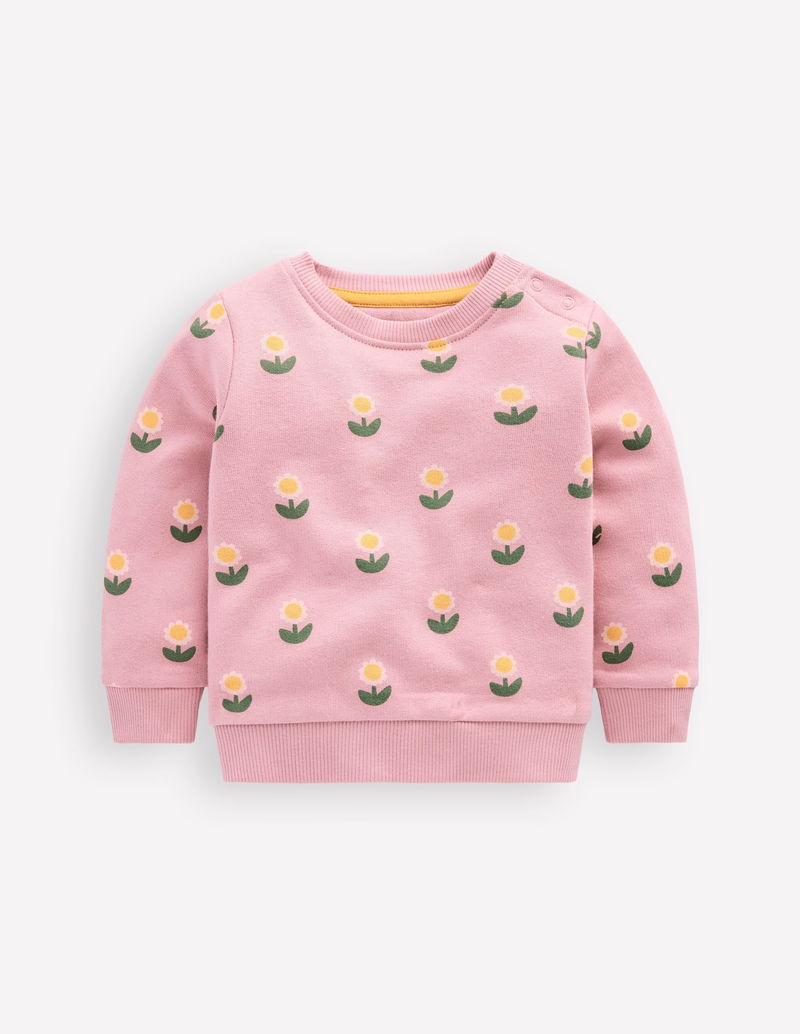 Printed Sweatshirt-Vintage Pink Daisy Stamp