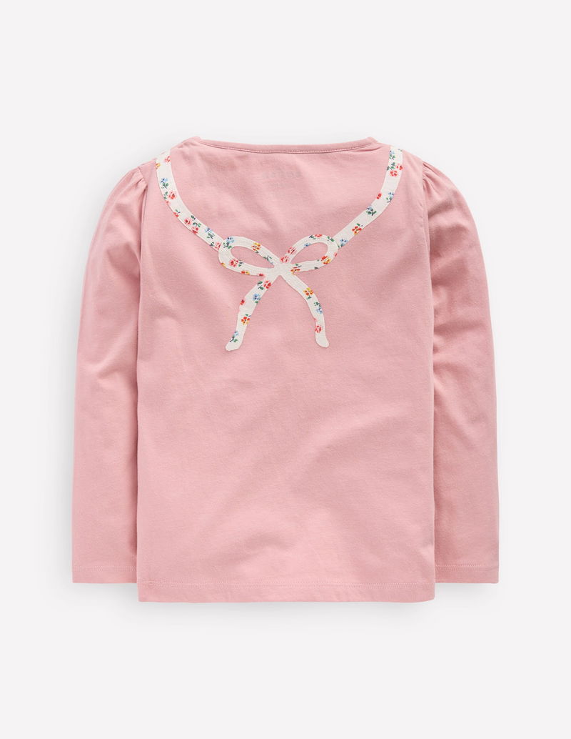 Puff Sleeve Appliqué T-shirt-Vintage Pink Skates