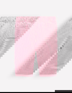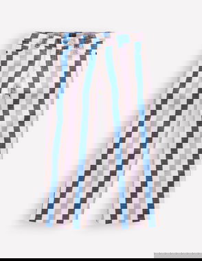 Little adventurers can clamber and crawl to their heart's content in these jersey bottoms. They have contrasting drawcords that match to the top and you can reverse the stripy trousers and reveal a new print. An elasticated waist makes changing simple.