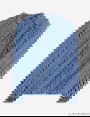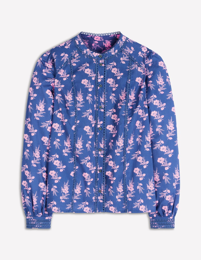 Rhea Trim Detail Cotton Top-Blue, Blossomy Sprig