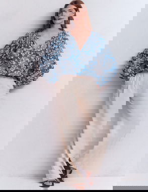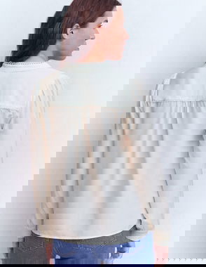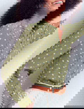 Rhea Trim Detail Cotton Top-Green, Decorative Blossom