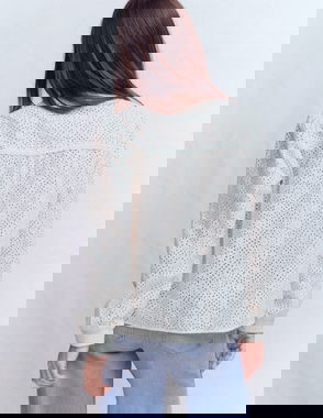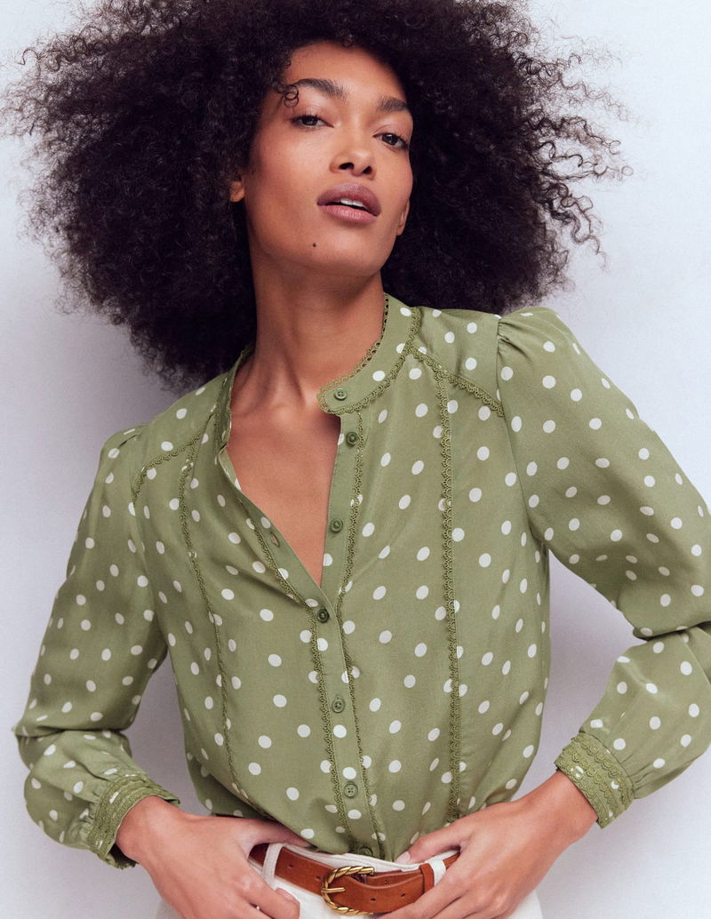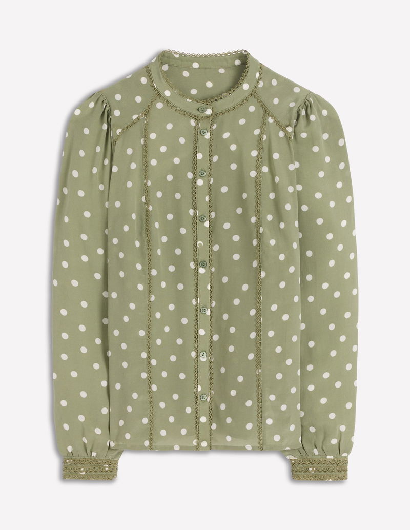 Rhea Trim Detail Silk Top-Larch Green, Painted Dot