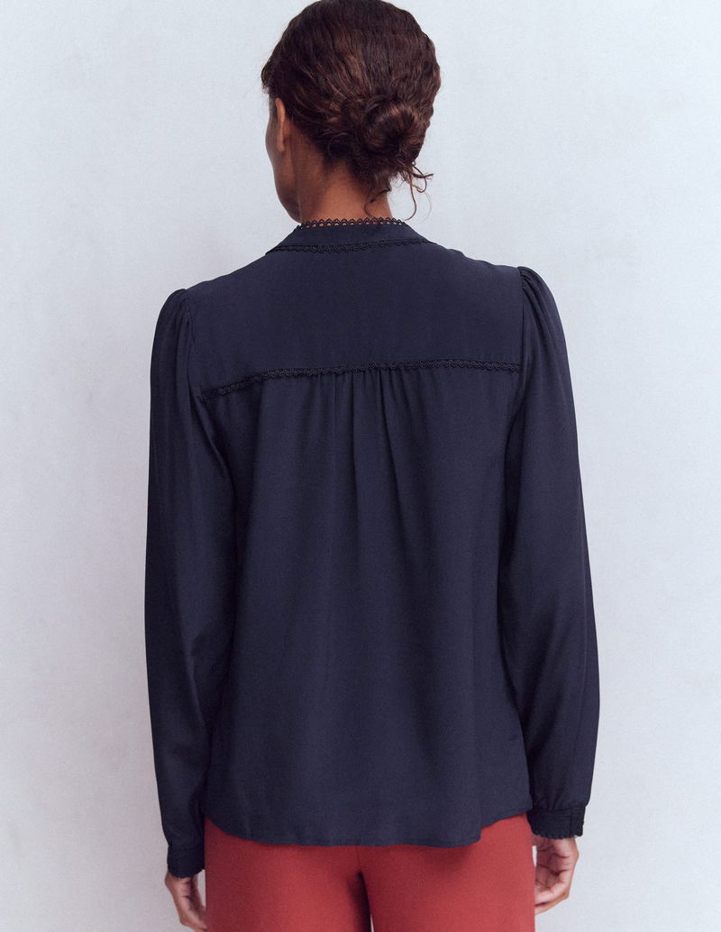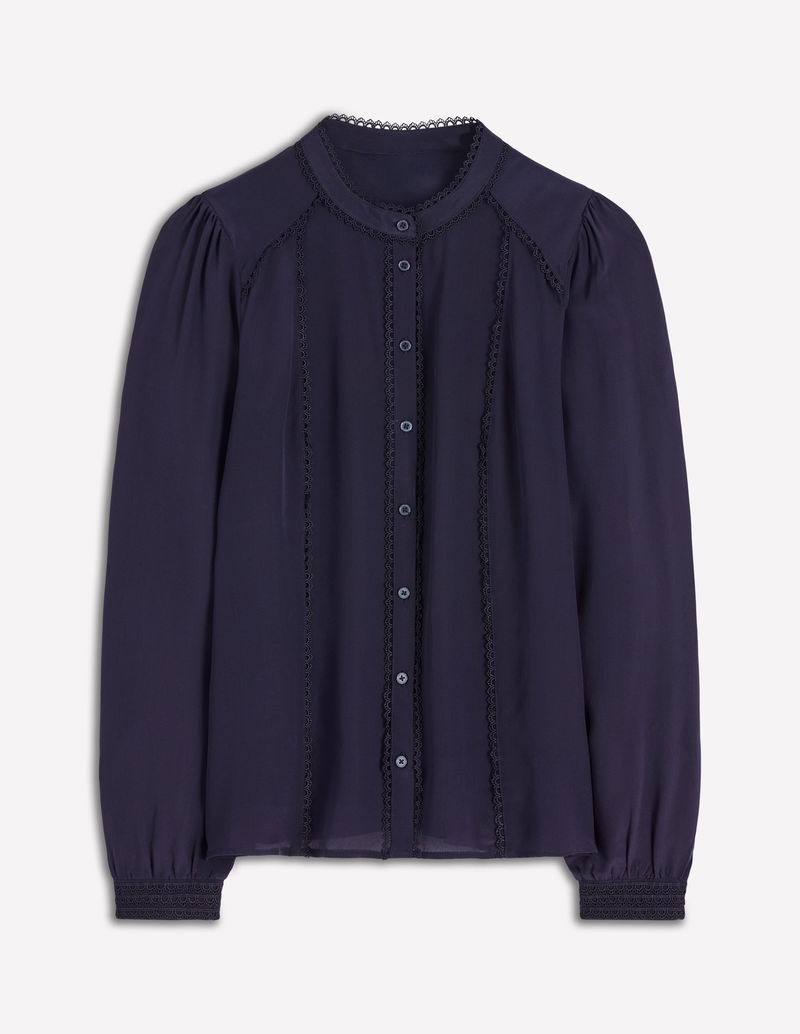 Rhea Trim Detail Silk Top-Navy