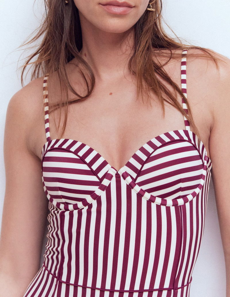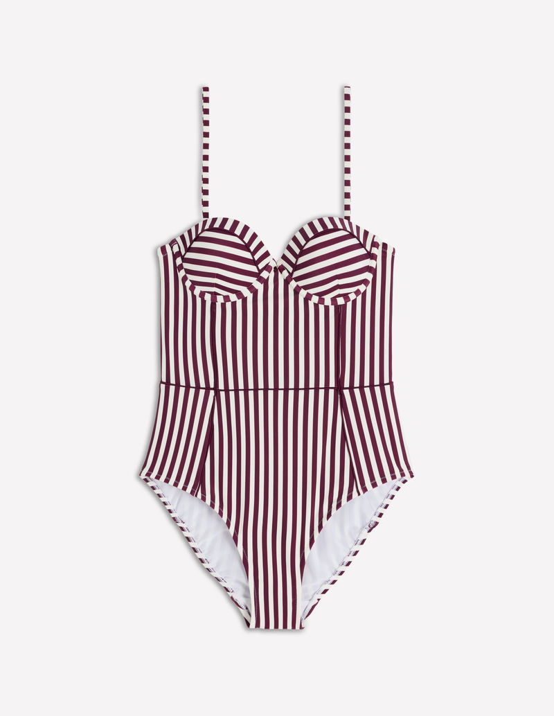 Rhodes Cup-Size Swimsuit-Chocberry, Ivory Stripe