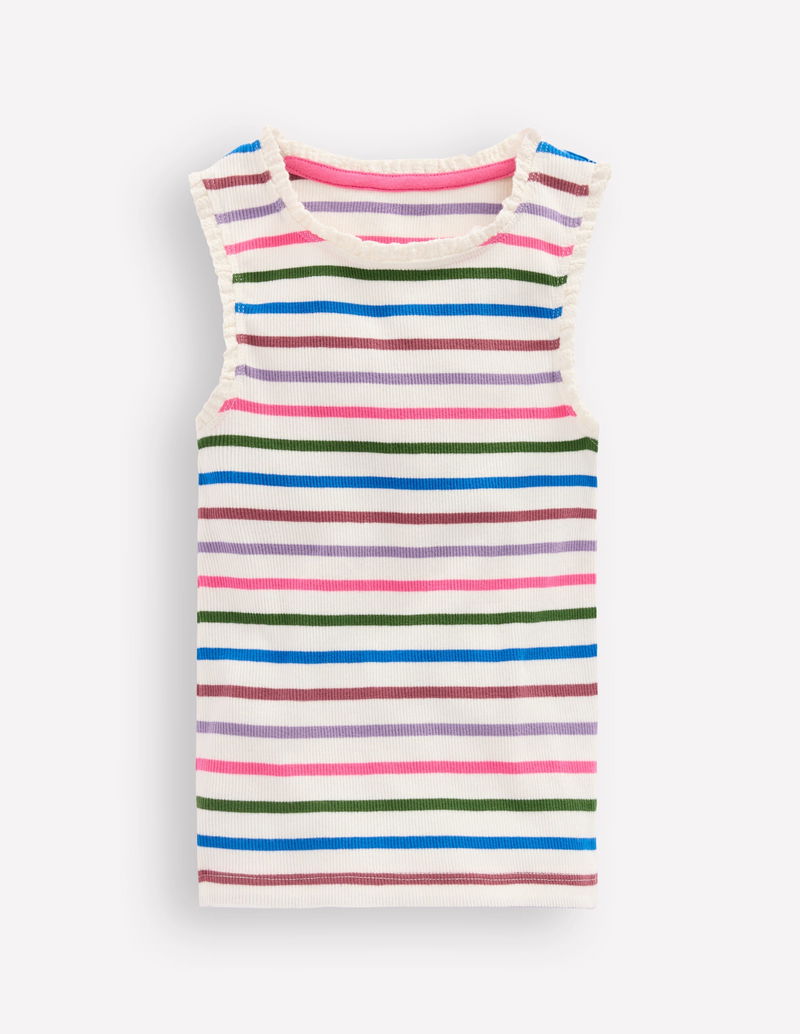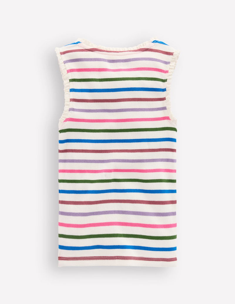 Ribbed Lace Trim Vest-Multi Stripe