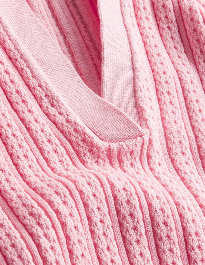 Ribbed pointelle collared top.